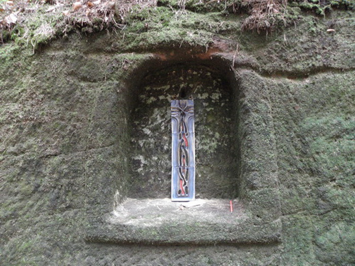 Díky příznivému počasí se nám podařilo uskutečnit jednu z letošních plánovaných akcí. Výklenek v Týnském dole při cestě na Kbelsko s datací A.D.1861 jsme osadili keramickým křížem od Josefa Valenty z Horní Housky. Kříž se skládá z 6 samostatných kachlů s částečně glazovaným povrchem.